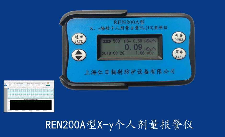REN200型X、γ個人劑量報警儀(又叫X、γ輻射個人劑量當(dāng)量HP(10)監(jiān)測儀)內(nèi)置高靈敏度蓋格計數(shù)管為探測器,主要用來監(jiān)測各種放射性工作場所的X、γ以及硬β射線的輻射,具有響應(yīng)快,測量范圍寬的特點。能顯示工作場所的劑量當(dāng)量率和累積劑量,更換電池時,日期及累積數(shù)據(jù)能永久保存。可選配RenRiPersonal個人劑量管理軟件,該軟件可存儲多個人的歷史數(shù)據(jù),能記錄日累積、月累積、年累積、輻照時長、計算平均劑量率、扣除或不扣除本底輻射,且以文字和圖譜的方式展現(xiàn)數(shù)據(jù)。廣泛應(yīng)用于核電站、加速器、鋼鐵、化工、同位素應(yīng)用、醫(yī)院、工業(yè)X、γ無損探傷、放射醫(yī)療、鈷源治療、γ輻照、放射性實驗室、核設(shè)施周圍環(huán)境監(jiān)測